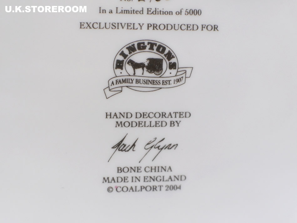 コールポートから2004年に5000体限定で製造された、イギリスの紅茶ブランド『リントンズ』のフィギュリンです。リントンズが創業された1900年初頭のエドワーディアンレディがモチーフです。名前はエミリー。モダンなピンク色のドレスを着て紅茶が入ったティーカップ&ソーサーを持っています。デザインはコールポートで多数のフィギュリンを手掛けているジャック・グリンによるもの。色付けは手彩色でやさしい仕上がりです。欠けやヒビなどもなく、とてもきれいな状態です。2004年製。