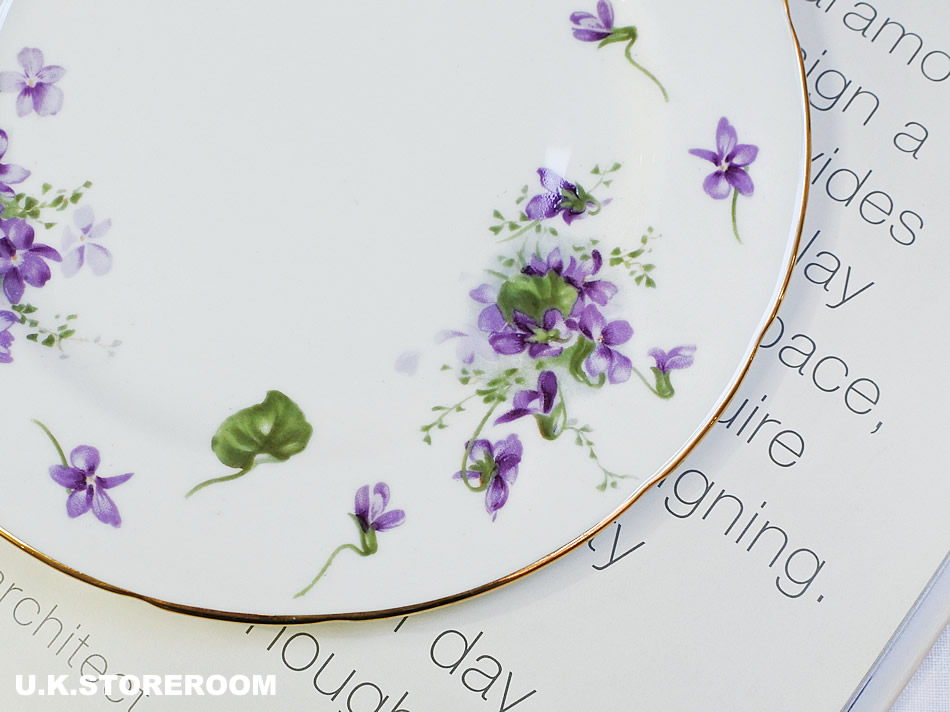 「ヴィクトリアンバイオレット」は1910年代頃から70年代頃まで生産されたハマースレイを代表するロングセラー作品です。スミレの花がたっぷりとプリントされ、スミレのコレクターには定番のアイテムとなっております。